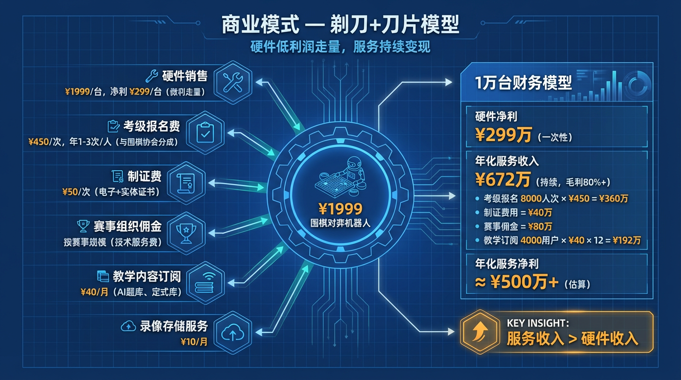 | 考级报名费 | ¥450/次 | 年1-3次/人 | 与围棋协会分成,平台抽取服务费 |