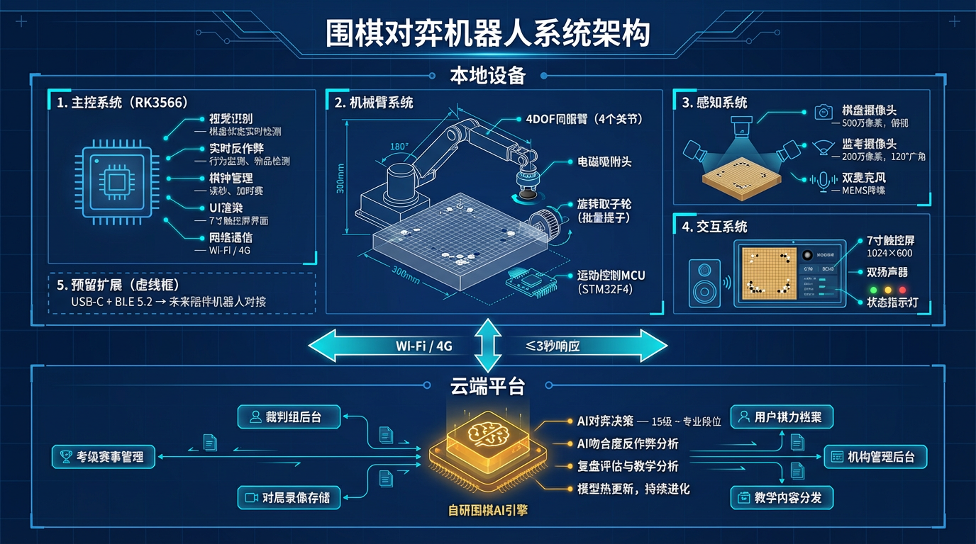 | 产品定位 | 情感陪伴机器人+围棋扩展模块 | 围棋对弈机器人(砍掉陪伴,预留接口) |